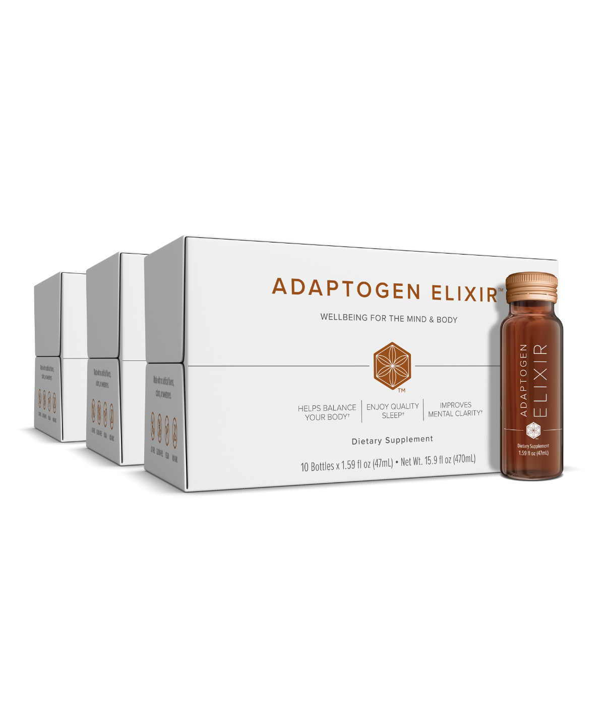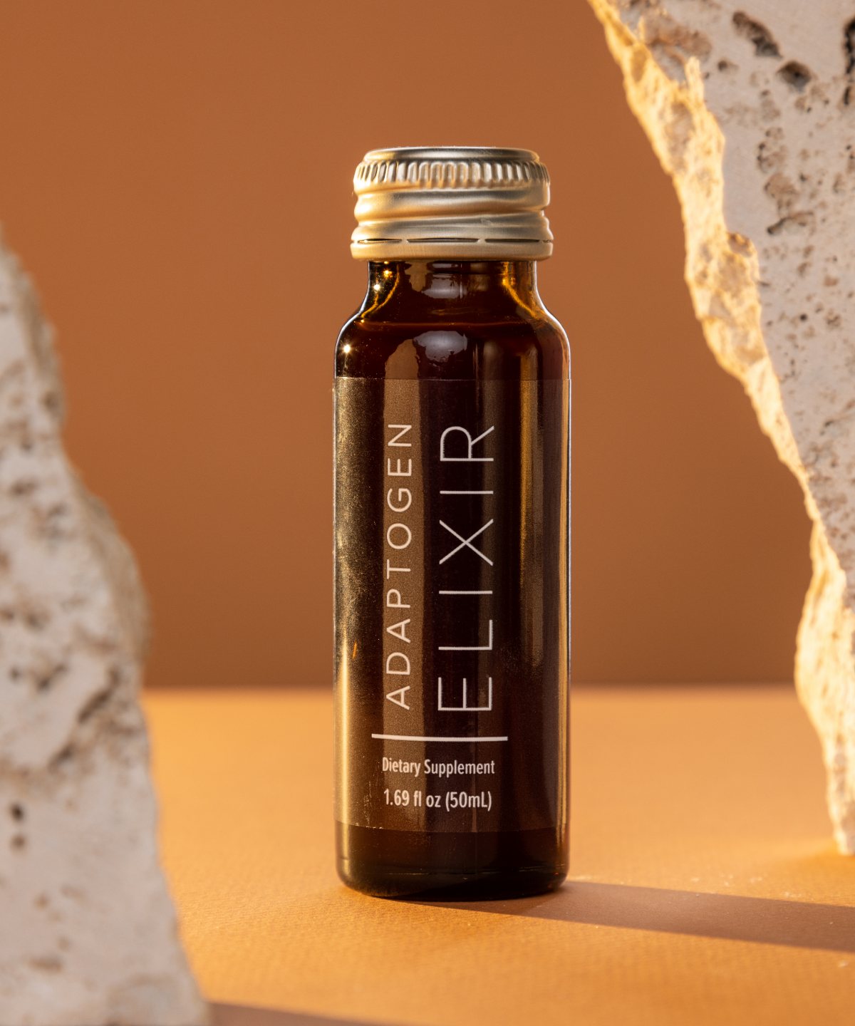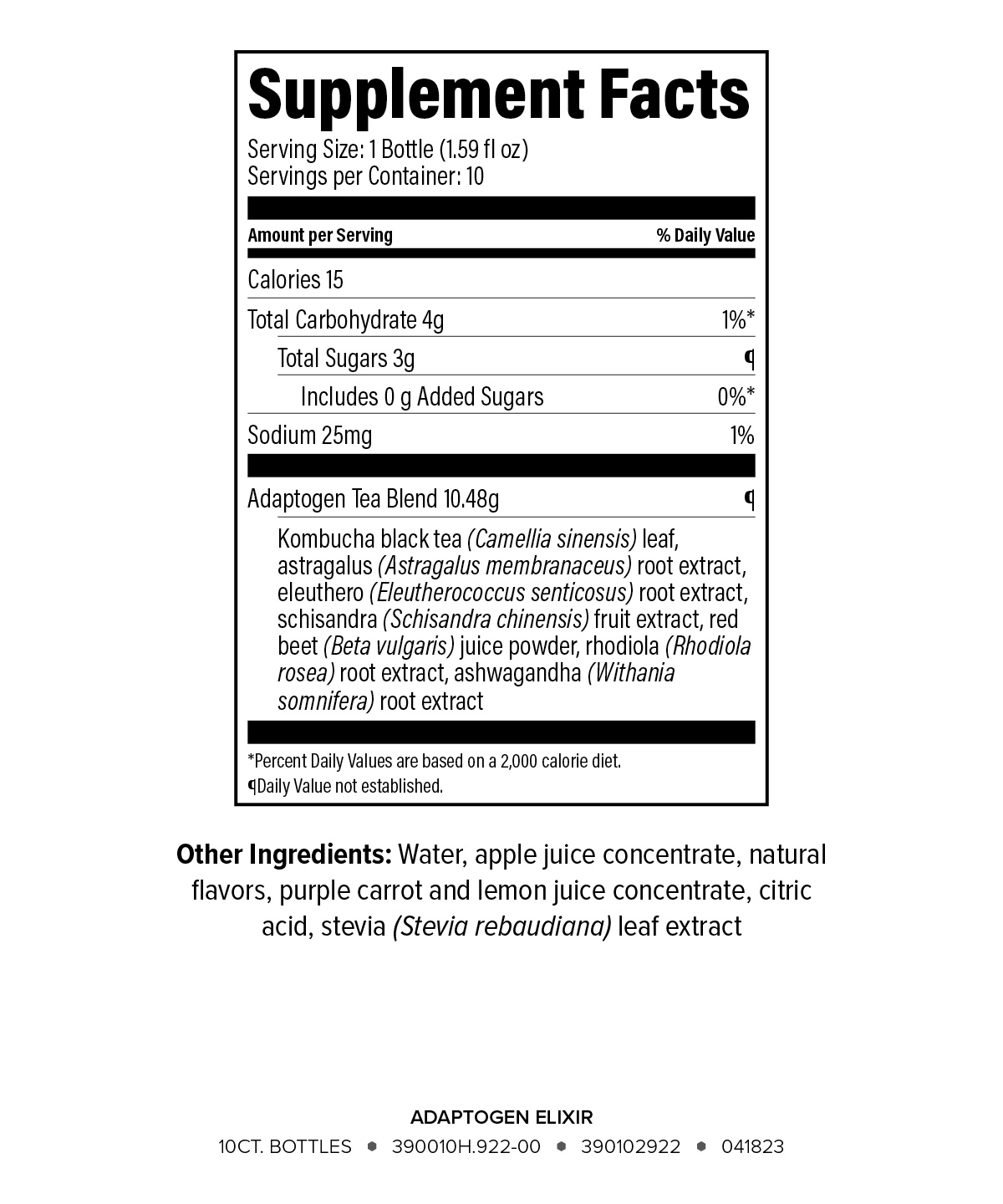 Adaptogen Elixir helps your mind and body combat the negative effects of stress through a powerful blend of adaptogens and botanicals.† In a perfectly portioned, on-the-go glass bottle, this delicious kombucha black tea with a hint of rose is the ideal way to balance your mind and support your immune system.