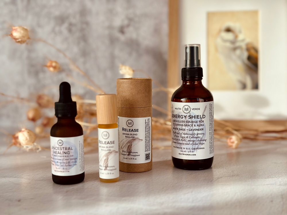 The kit includes: Ancestral Healing Flower Essence Elixir, 1 oz bottleTrue Self Release Aroma Roll-On, 10 mlEnergy Shield White Sage +Lavender Smokeless Smudge, 4 oz