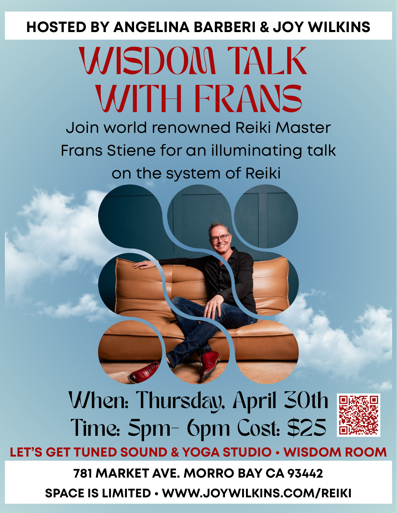 Join us in Beautiful Morro Bay Ca for a Wisdom Talk with Frans the evening before he teaches Shinpiden Reiki III.